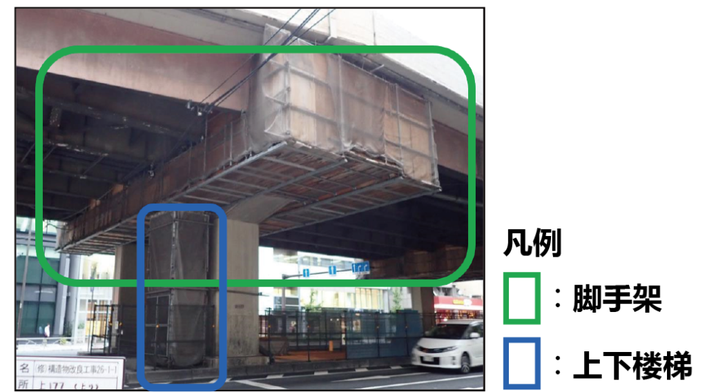 <基本上在白天(脚手架内)施工>